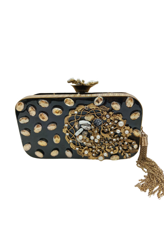 'Double sided full embellished clutches. Stones can slightly vary due to the availability of the...