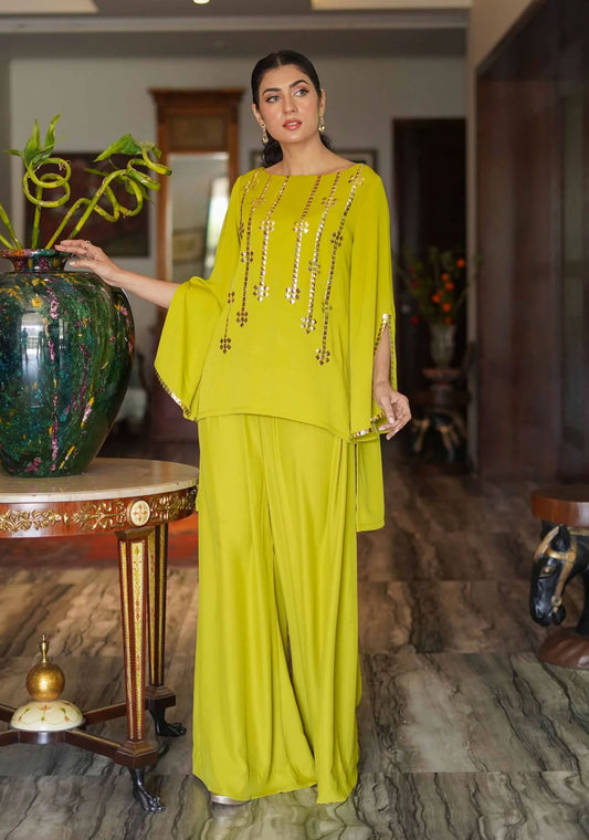 Organza mukesh shirt with hand embellishments paired with khaadi cotton pants Small Size ( Shirt+Pant )...