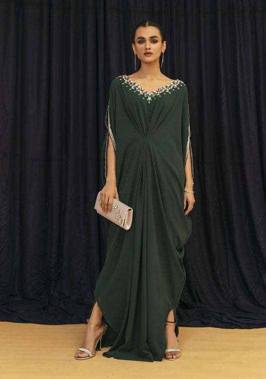 Step into effortless sophistication with this royal purple kaftan adorned with intricate paisley embroidery. The...