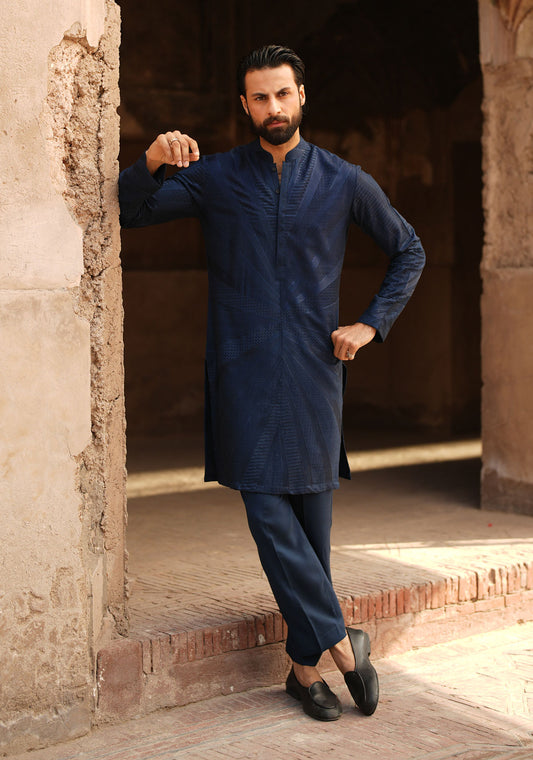 Navy Blue Embroidered Kurta and Trouser Set, a perfect fusion of traditional craftsmanship and modern...