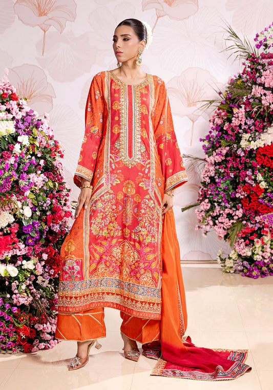 A mesmerizing play of tradition and modernity, this Sarah Sheeraz ensemble features a beautifully printed...