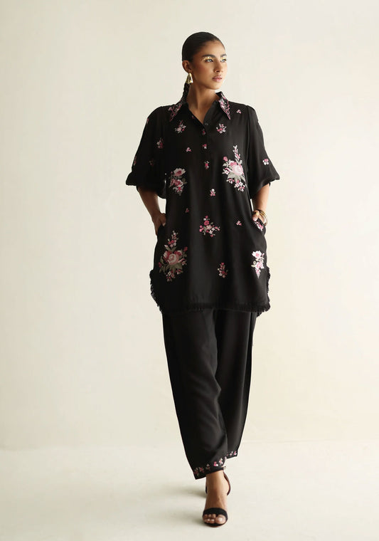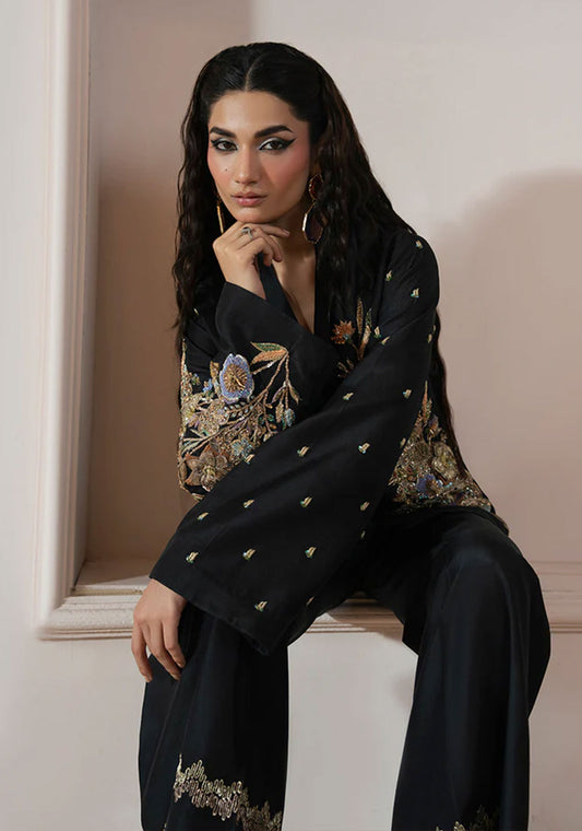 Black Embellished Ensemble – 2-Piece SetStep into timeless elegance with this captivating black raw silk...