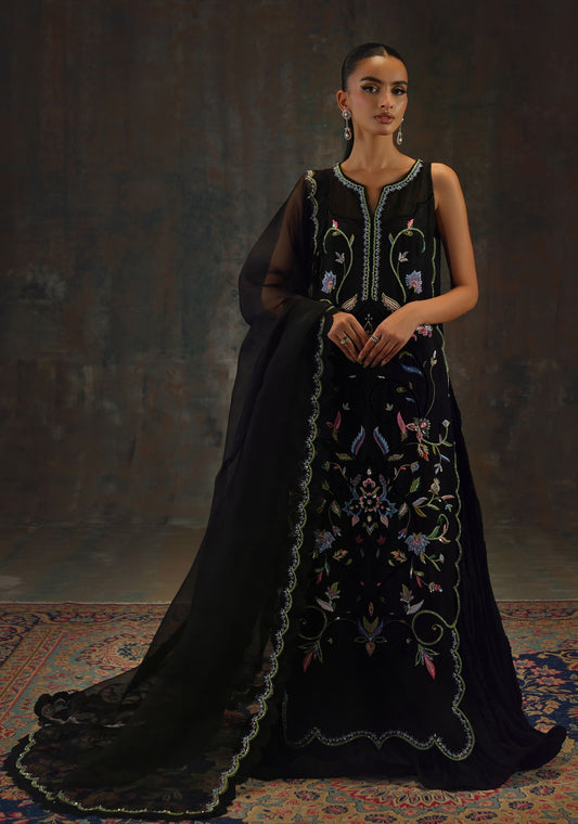 Like a midnight garden in full bloom this ensemble is crafted from lustrous silk. The...
