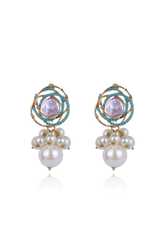 • Intertwining rings and turquoise pearl clusters • A cosmopolitan gem, where diversity brings a...