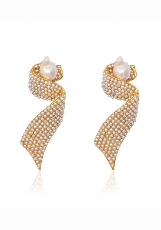 • A “twist” on the classic ribbon earring, encasing a gloriously uneven baroque pearl, •...