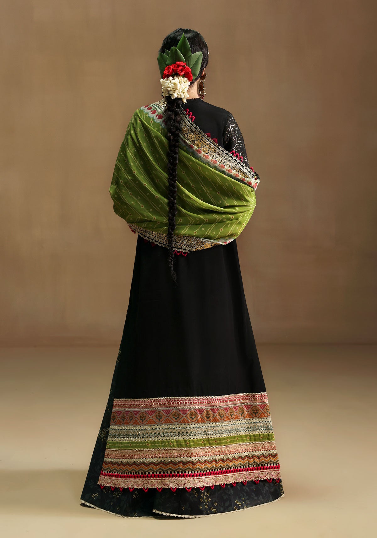 An opulent creation blending rich raw silk with exquisite embroidery and artistic digital prints. Crafted with precision and elegance, this ensemble embodies luxury, sophistication, and fine craftsmanship — ideal for festive and formal occasions.