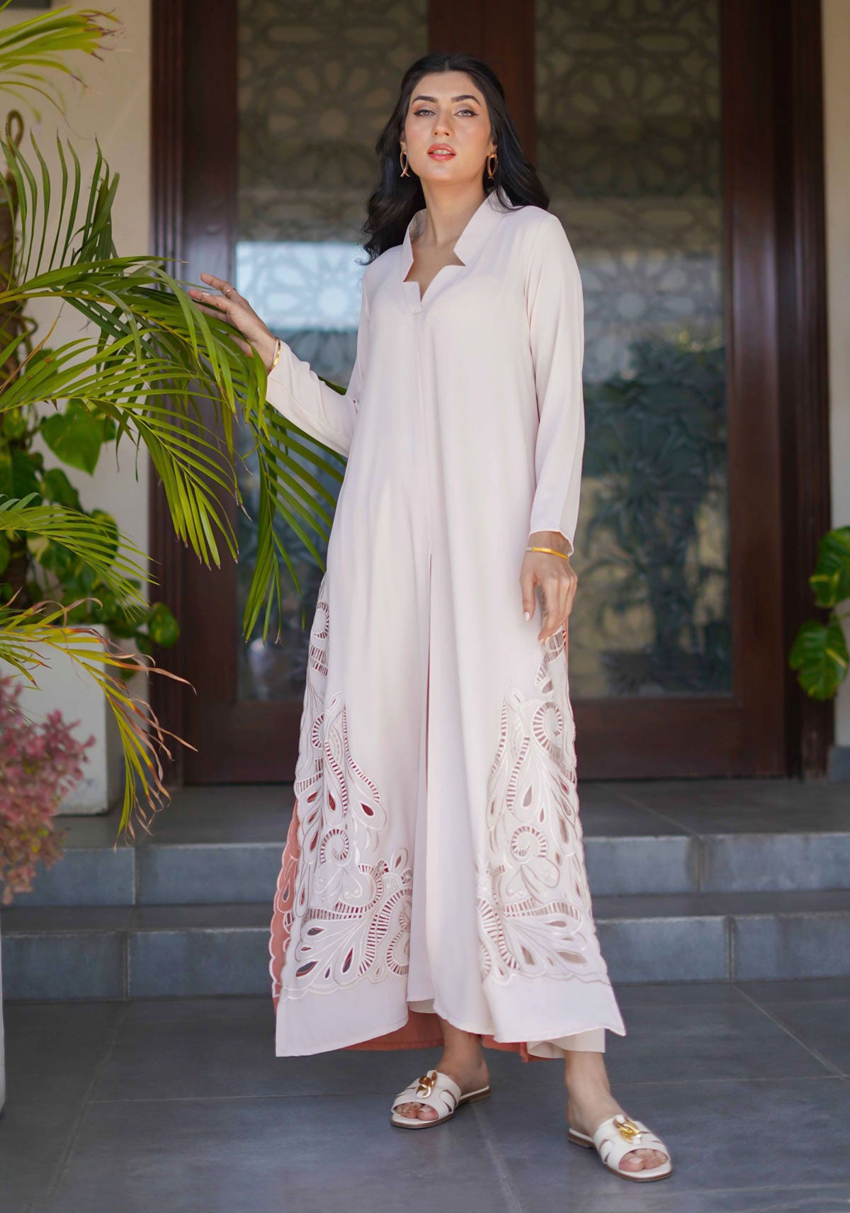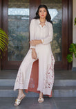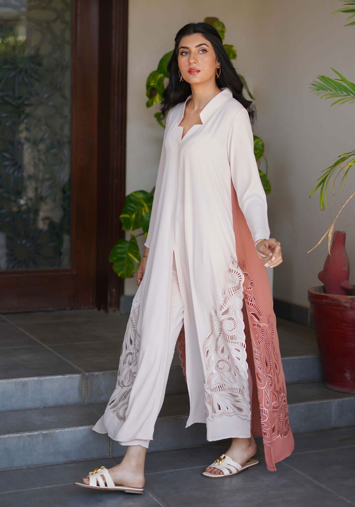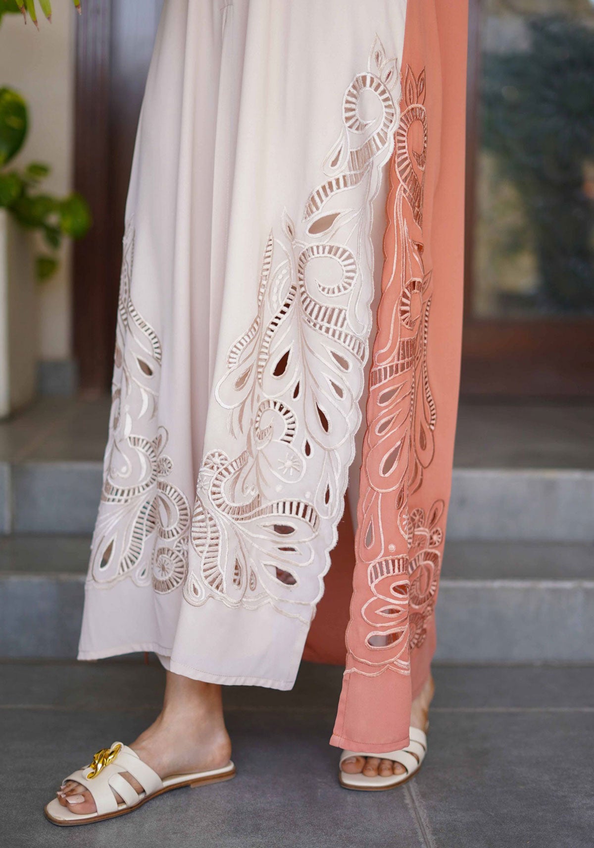 'Amani is sure to be that ensemble which can be dressed up from day to night. Featuring a classic two-toned silhouette in ivory and rust, enhanced with intricate cutwork detailing and paired with straight pants; we vouch for this flattering look this season.