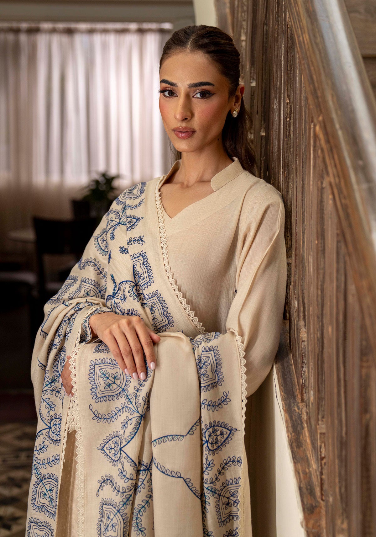 Classic decadence! this multani inspired colour combo in blue hued thread work lends a classically feminine mood to the ensemble. A midi length breezy silhouette crafted in woollen shawl and detailed with a unique embroidery along the chaak and sleeves. Wear it with flared trousers and our shawl with cascading embroidery for a timeless edit.