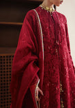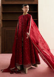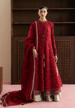 - Fire red, double pants (silk churidaar and raw silk lehenga) with contemporary embroidery border.