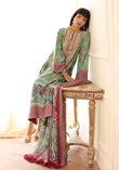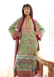 This green outfit includes a silk shirt with handwork detailing, Korean silk trousers, and a pure medium silk dupatta edged with lace on all sides — a graceful choice for any festive occasion.
