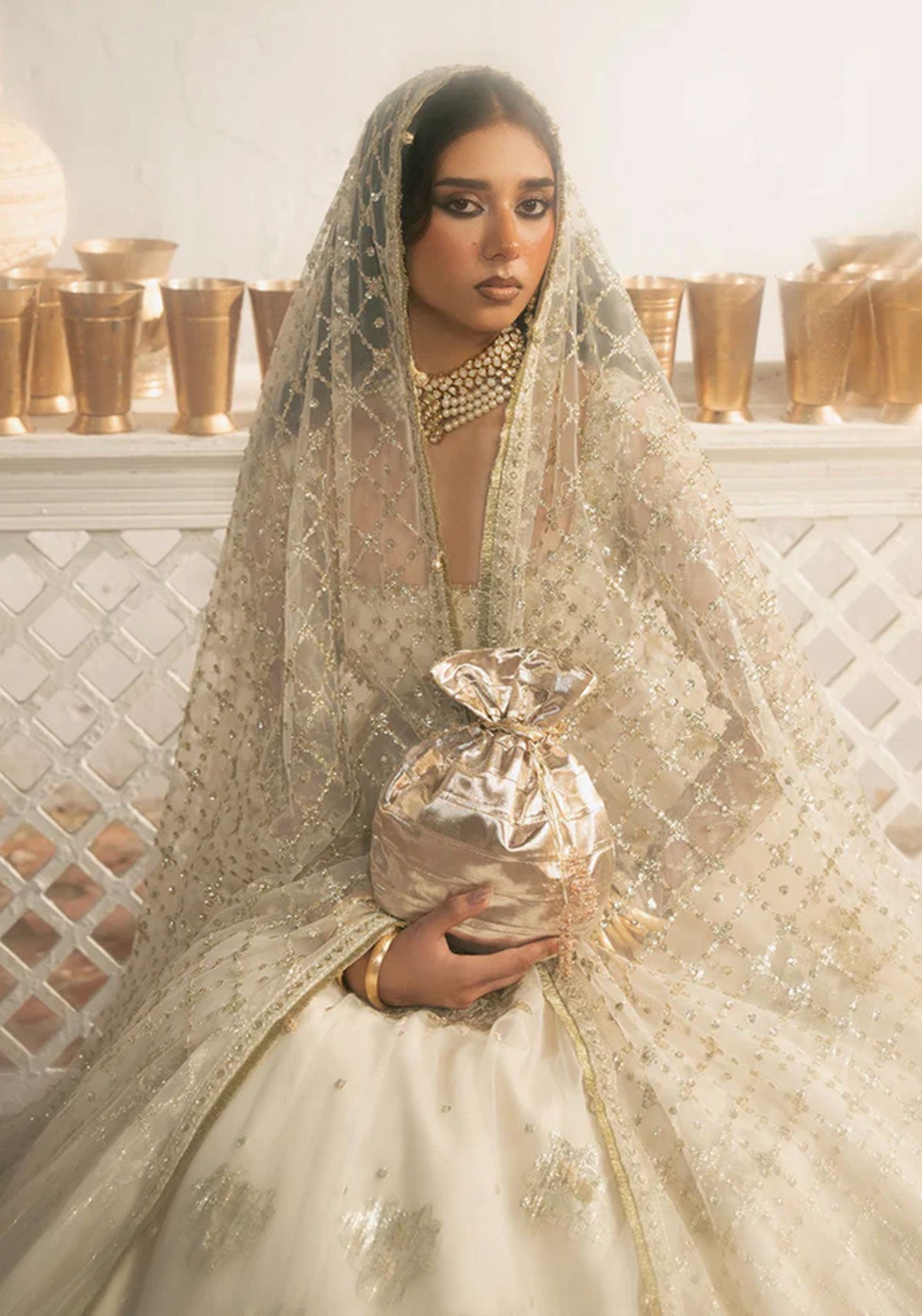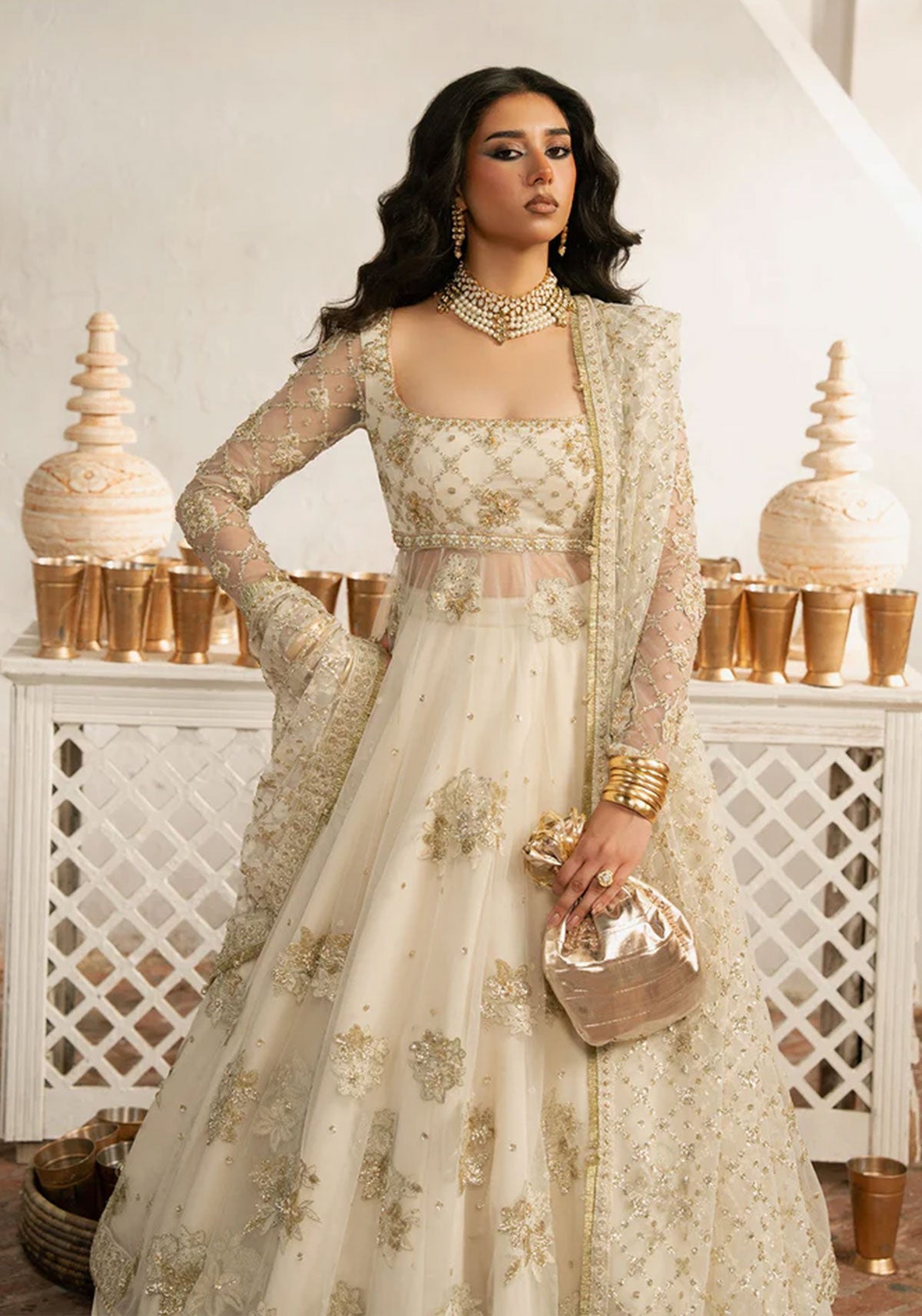 Aveline is a true celebration of artistry and couture refinement. This taupe peshwas gown embodies regal tradition, reimagined with modern sophistication. Designed in delicate net and raw silk fabrics, the ensemble balances intricate embellishment with graceful structure, creating a silhouette that is both timeless and commanding.