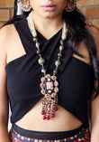 Baroque pearl, pink Topaz and pure Silver necklace. Exquisitely detailed and intricately put together, with long tassel crystals.