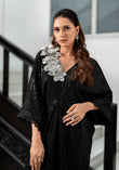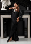 Black Sequinned Kaftan with 3D Crystal Flowers
