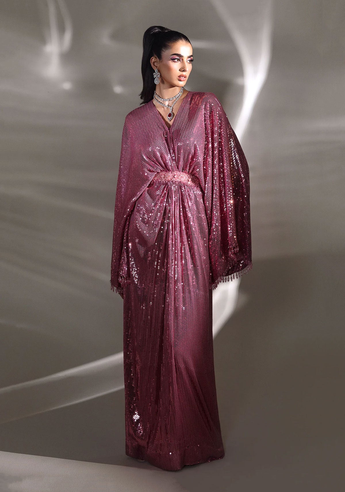Step into a realm of unparalleled sophistication with Rosée, a magnificent rose pink sequined gown that glistens like morning dew kissed by the first light. Crafted for the discerning muse, this floor-length masterpiece is impeccably sculpted with an exquisitely embellished crystal belt—an emblem of Elan’s unparalleled artistry and signature opulence. Every shimmer and contour commands attention, elevating your presence to celestial heights. For those who aspire to captivate and embody timeless glamour, Rosée is the ultimate declaration of refined elegance and radiant allure.