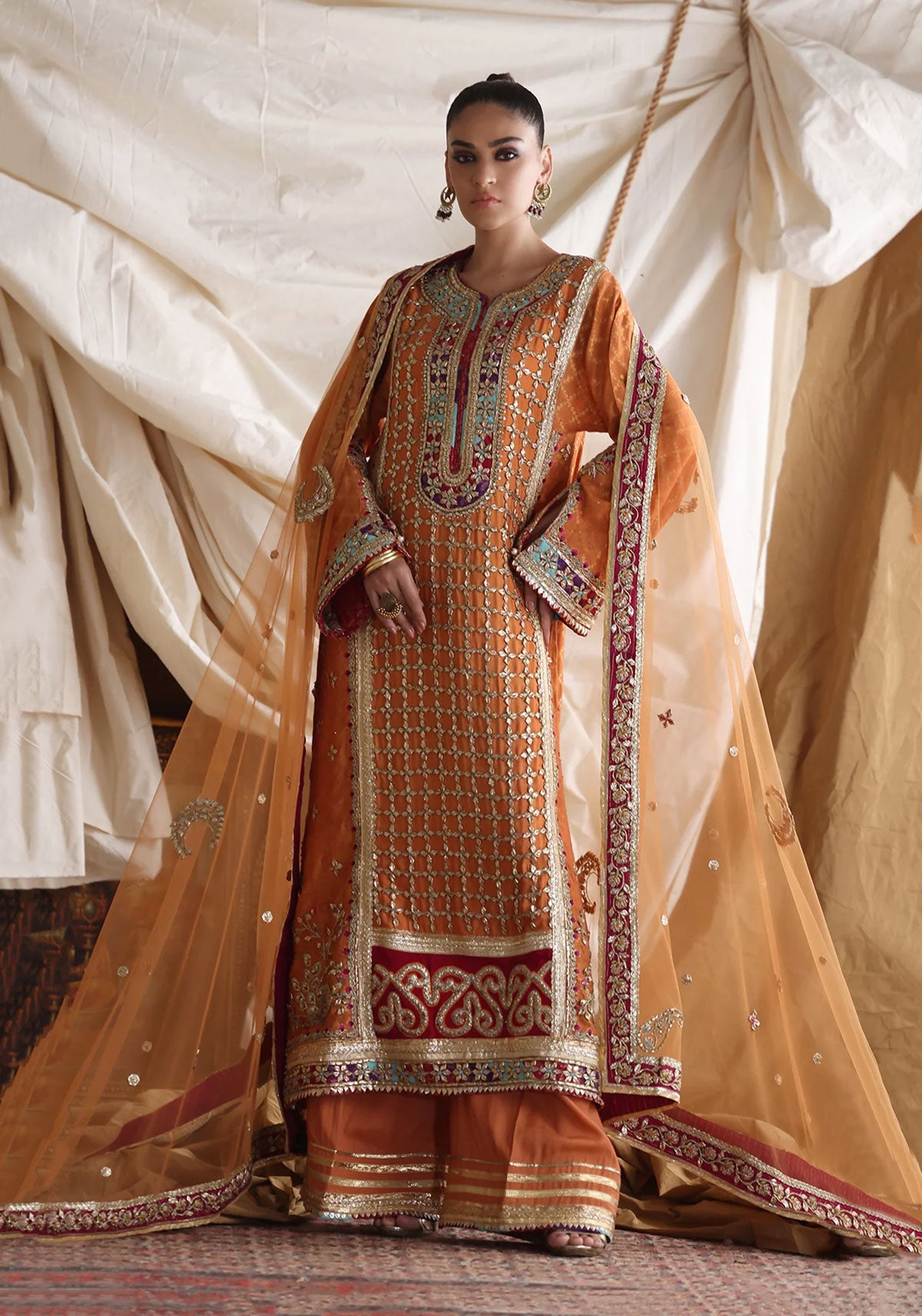 Elevate your ethnic wardrobe with this exquisite net base dupatta, elegantly adorned with intricate gota work. The lightweight net fabric drapes beautifully, making it perfect for any occasion. The edges are beautifully embellished with shimmering kiran lace, adding a touch of sophistication and flare. Ideal for pairing with traditional outfits, this dupatta effortlessly combines modern style with classic craftsmanship, making it a must-have accessory for festive celebrations or special gatherings.