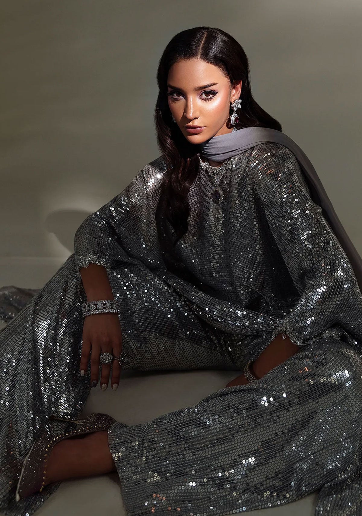 Command the spotlight in Lumière, a breathtaking silver shimmery cape paired with dazzling sequined pants, exquisitely embellished with radiant crystals. This show-stopping ensemble exudes opulent glamour and ethereal elegance, designed to captivate at the most exclusive soirées and upscale events. Every shimmer catches the light, every detail whispers luxury — making Lumière your flawless armor for unforgettable nights.