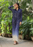 A stunning shaded sequined silk jumpsuit, perfect for a contemporary and chic look.