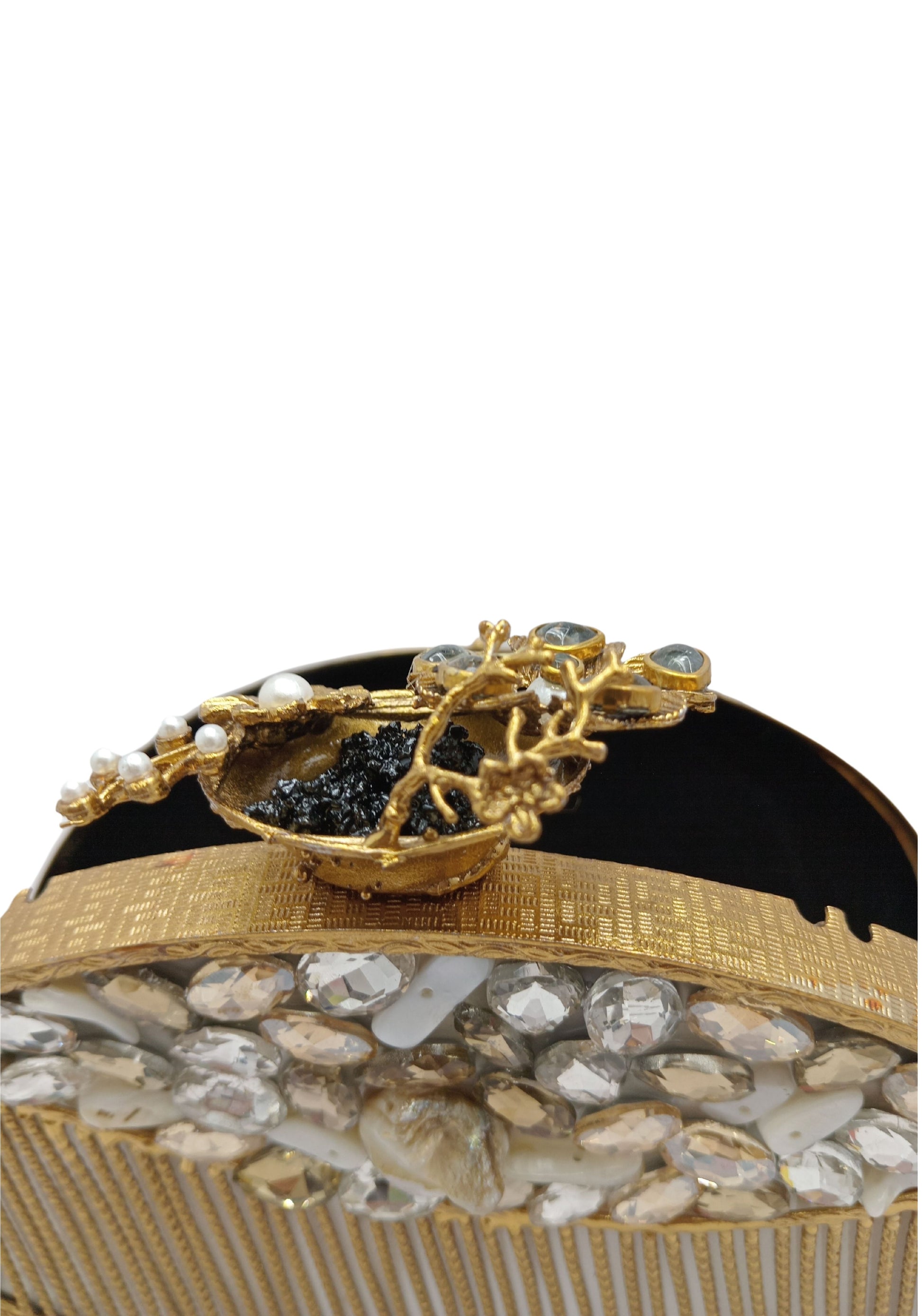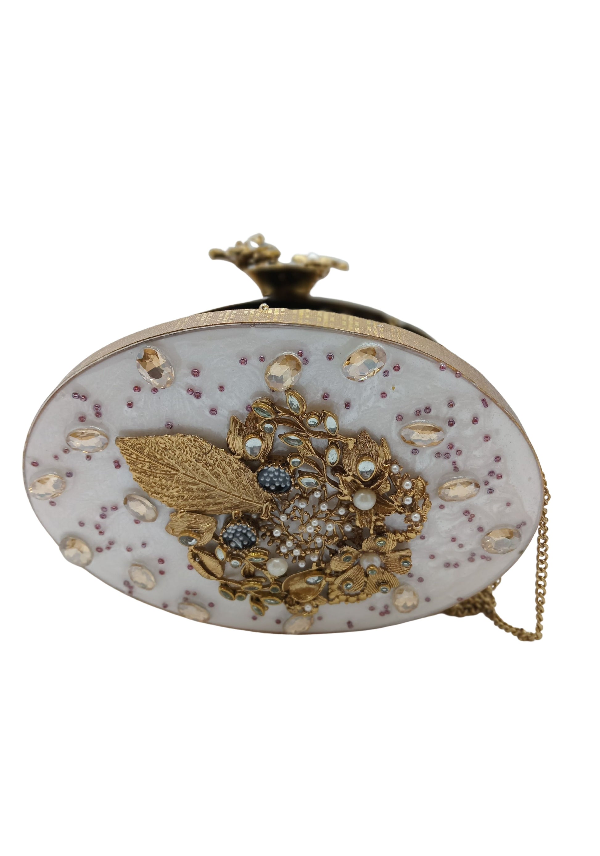 Luxury semi precious clutches with mother of pearl touch for wedding /evening occasions. Each clutch is crafted beautifully handmade. Made to order, slight difference in stones can appear due to the availability.