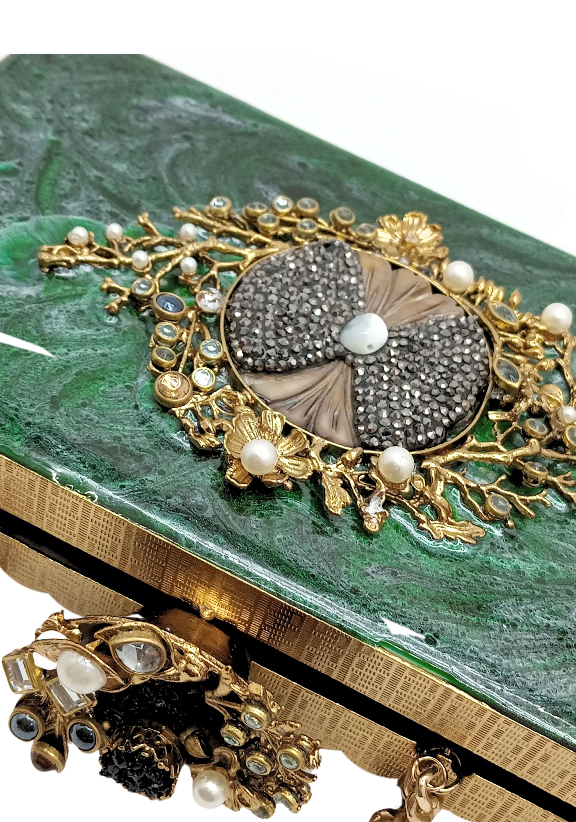 Luxury semi precious clutches with mother of pearl touch for wedding /evening occasions. Each clutch is crafted beautifully handmade. Made to order, slight difference in stones can appear due to the availability.