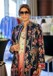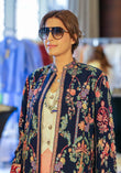 A timeless Kashmiri long jacket on a deep navy base, beautifully adorned with intricate multicolored floral embroidery. Designed with a straight cut, full sleeves, and a mandarin collar, this versatile piece blends traditional craftsmanship with modern elegance — perfect to style over both ethnic and contemporary outfits.