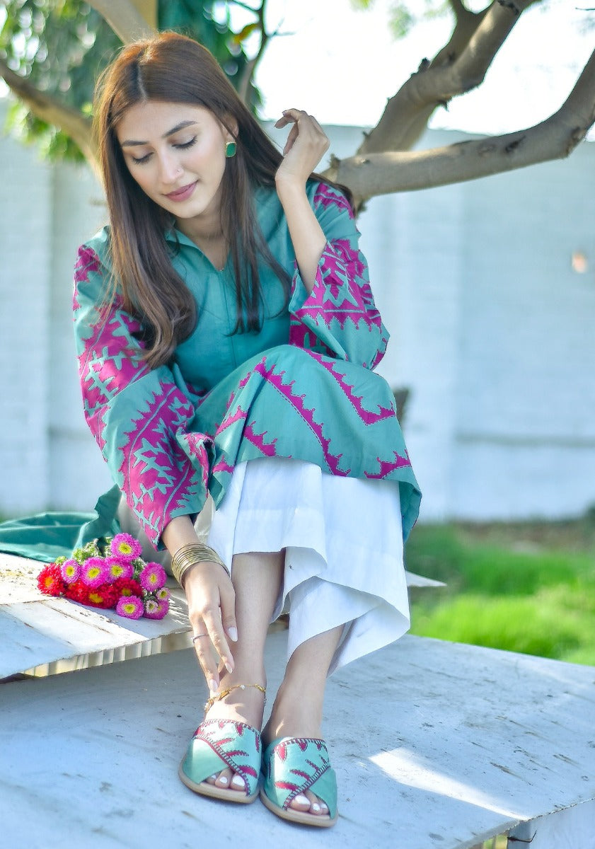 • The traditional amalgamation of pattern and embroidery speaks elegance.