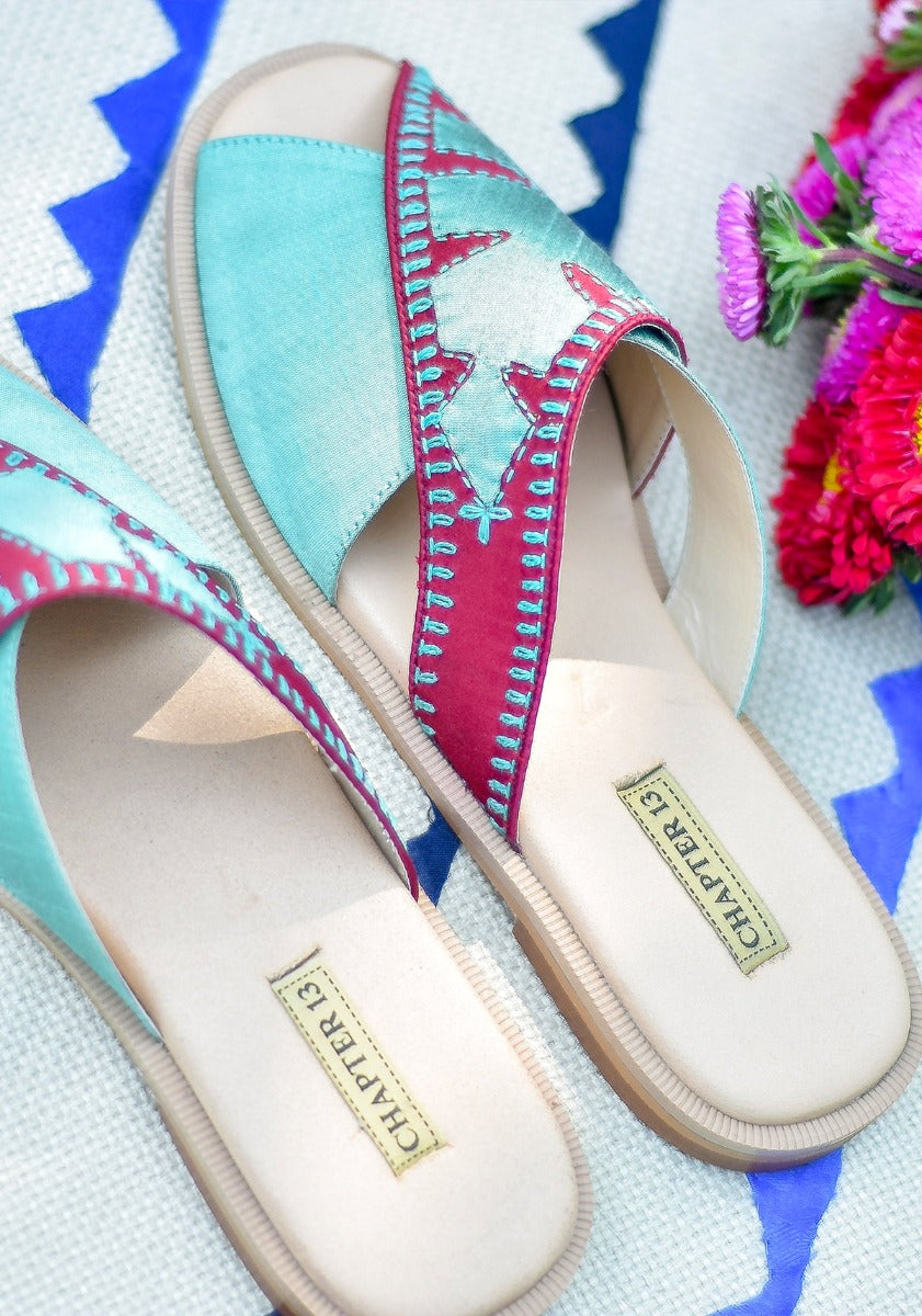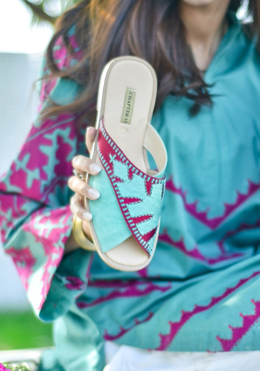 • Upper: Traditional ralli worked motif in barrel green raw silk hand appliquéd and patchwork by women artisans.