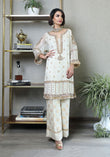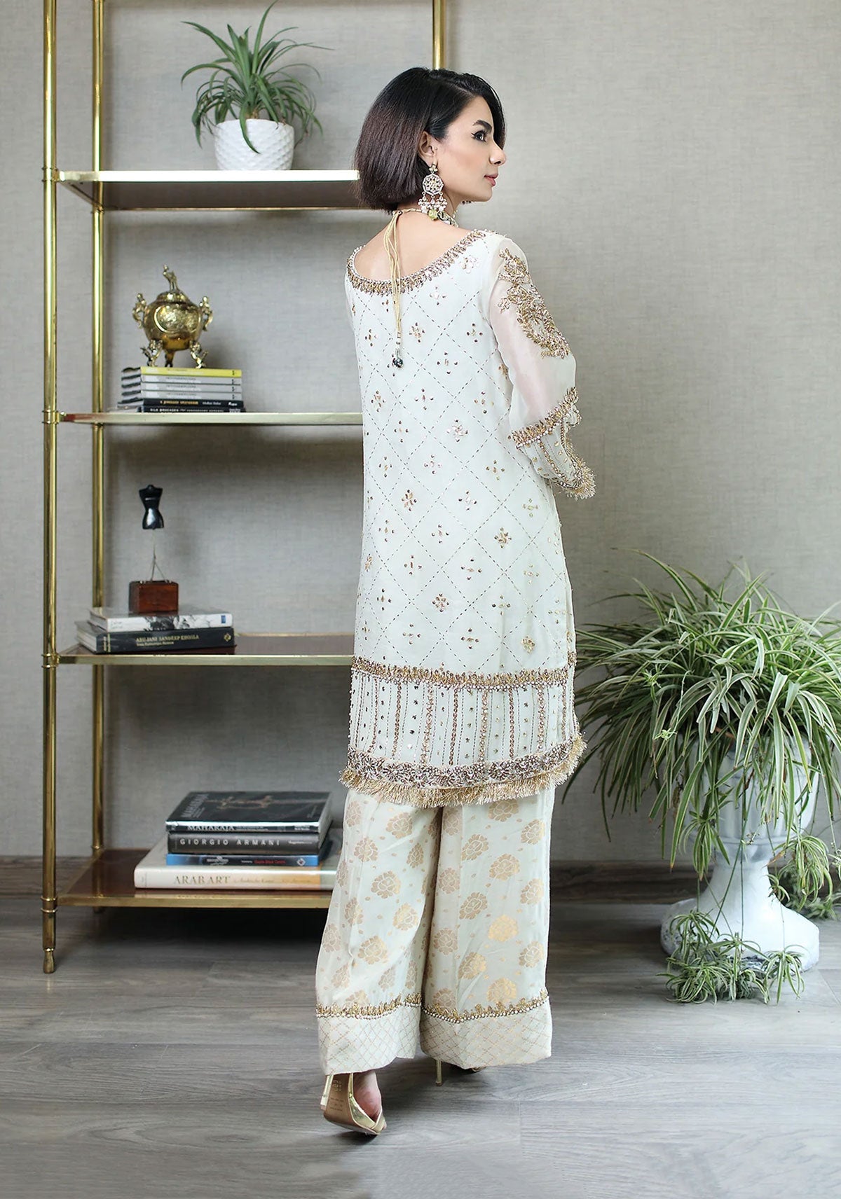 Organza mukesh shirt with hand embellishments paired with khaadi cotton pants