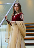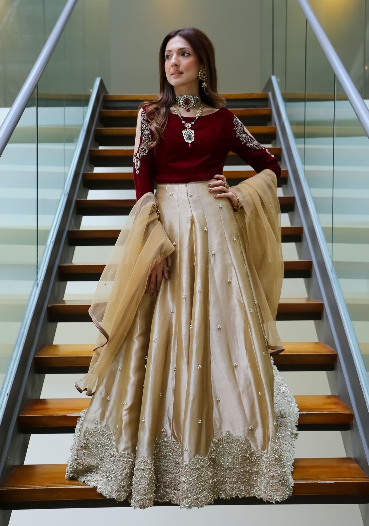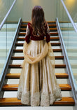 Maroon Velvet & Champagne Gold Anarkali Gown