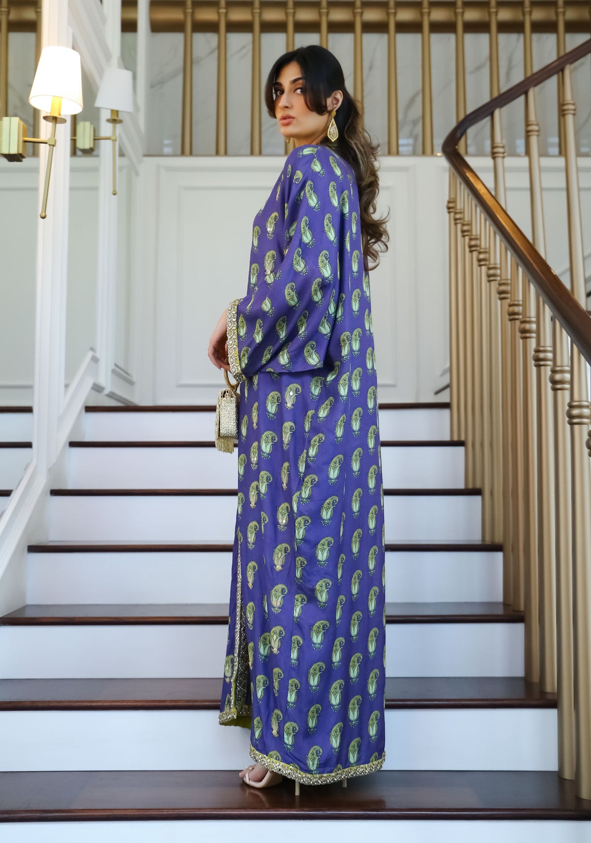 Royal Purple Paisley Embroidered Kaftan