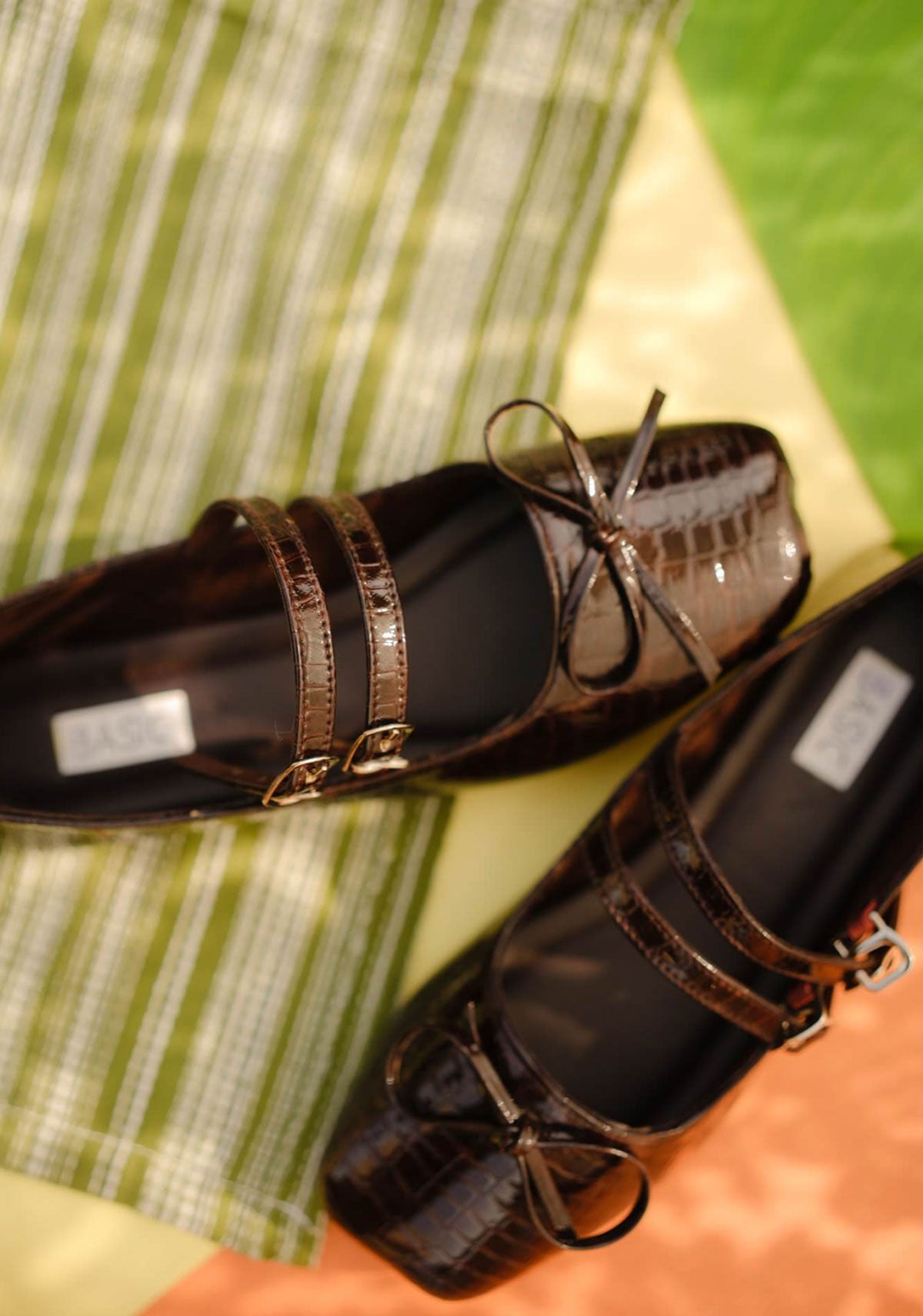 Step into comfort with our Mocha Croc Mary Janes—where style meets practicality! These flats feature a gorgeous shiny patent in chocolate brown finish with textured croc detailing, topped with an adorable hand-tied bow in matching patent rexene. The double strap design keeps your feet secure, while dual easy-closure buckles with elastic make getting ready a breeze. Inside, plush suede lining paired with a rubber sheet layer cradles your feet in all-day comfort, complete with a cushioned insole. Perfect for little fashionistas who refuse to compromise on style or comfort.