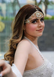 A stunning gold-tone headpiece that elevates any traditional ensemble. Featuring an intricately designed circular motif and delicate side chains, it adds an air of royalty and sophistication. This enchanting accessory is a true statement piece for special occasions.