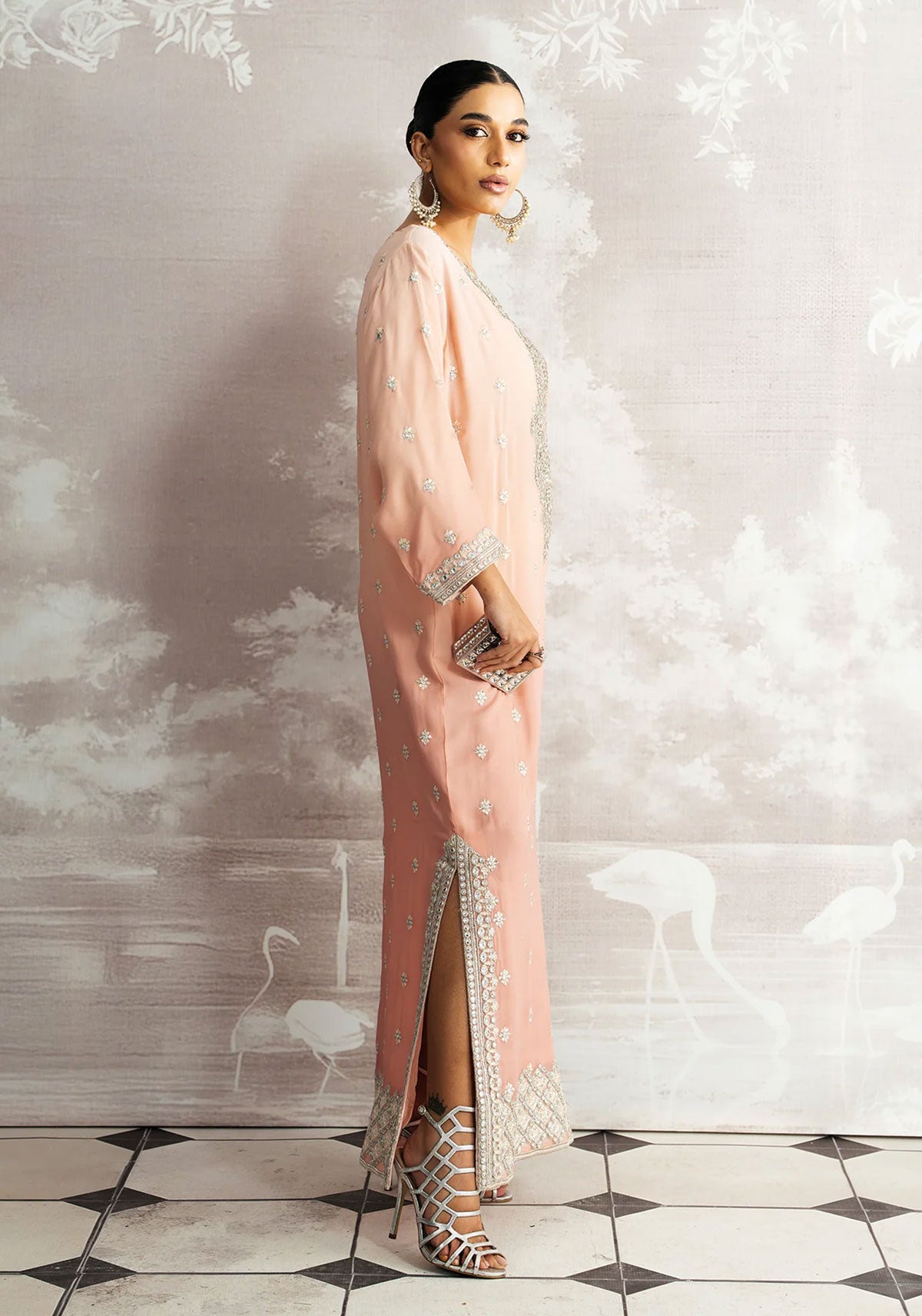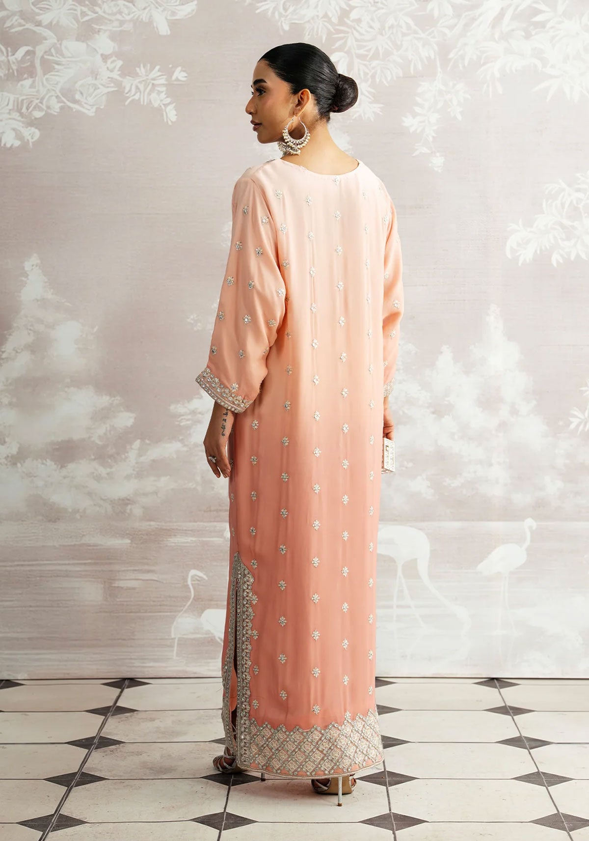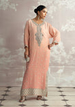 Delicately radiant, Mehrnaz unfolds in soft pink shades, exuding a feminine charm that’s both timeless and elegant. Featuring a hand-embellished neckline and paired with a graceful plain spray dupatta, this Luxury Pret ensemble is a perfect harmony of subtle sophistication and artisanal brilliance.