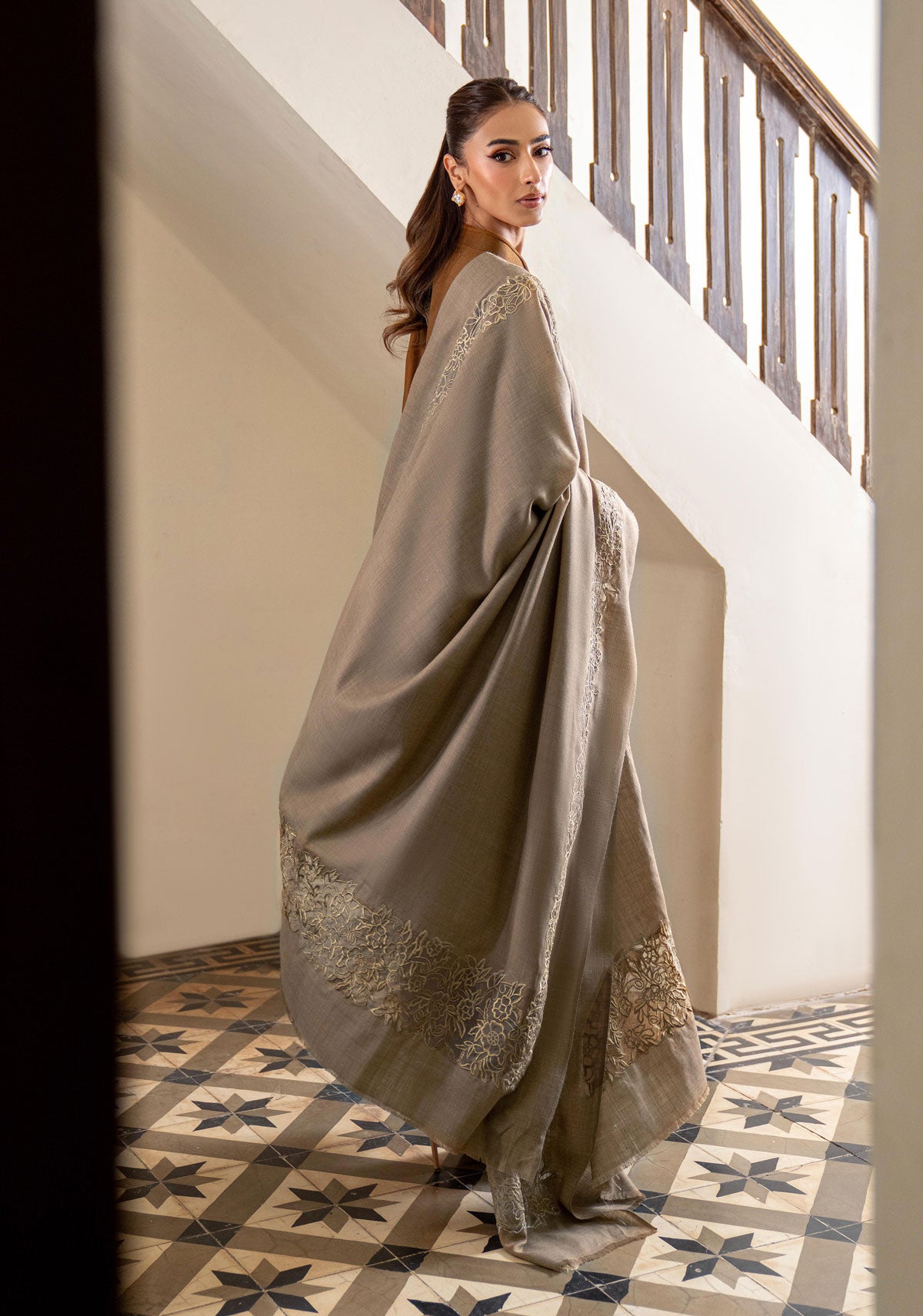 Dupatta : Woollen Blend with organza applique