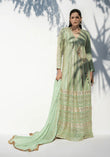 Mint Green Angarkha with Hand Embellished Lacha and Chiffon Dupatta