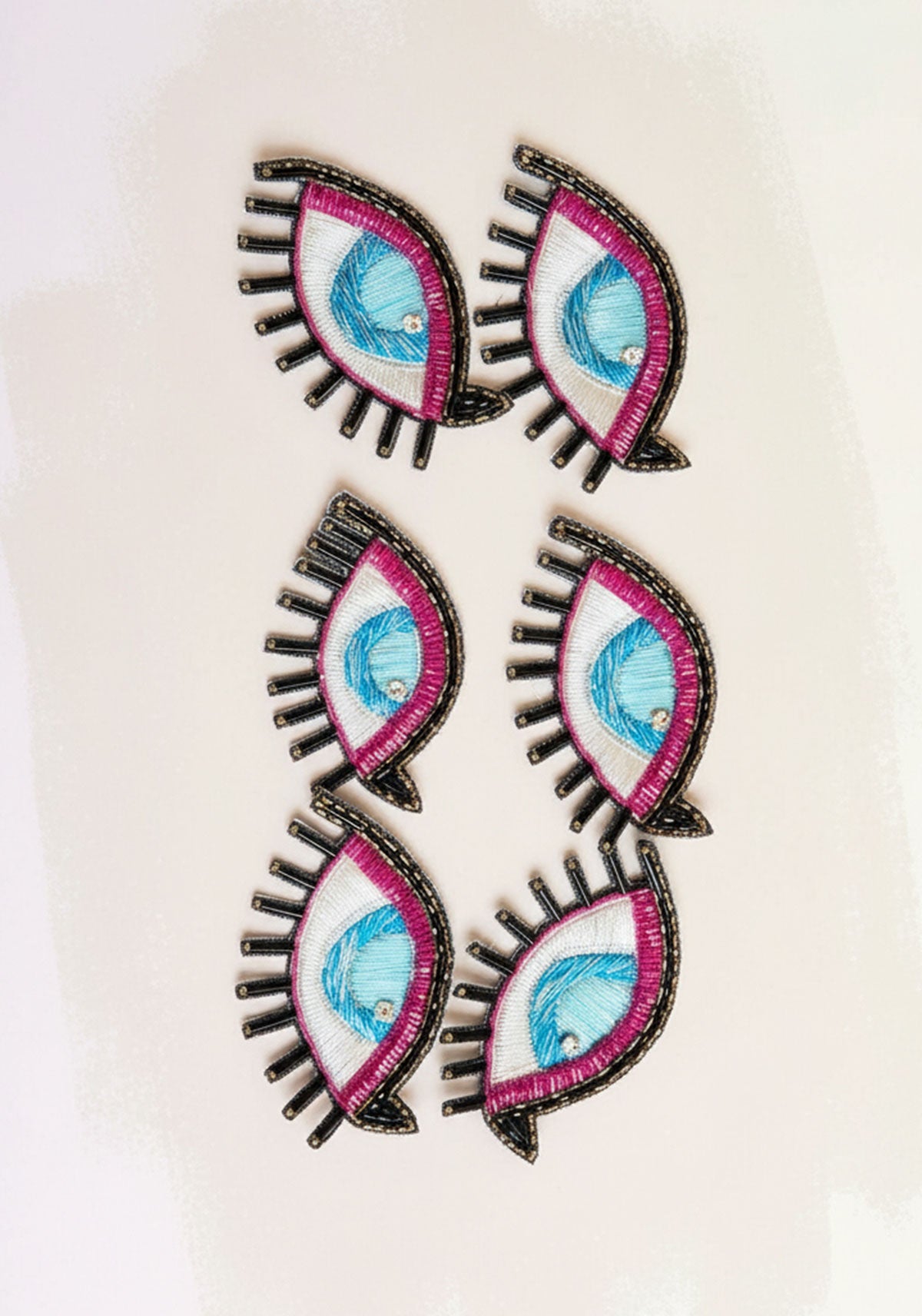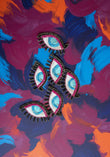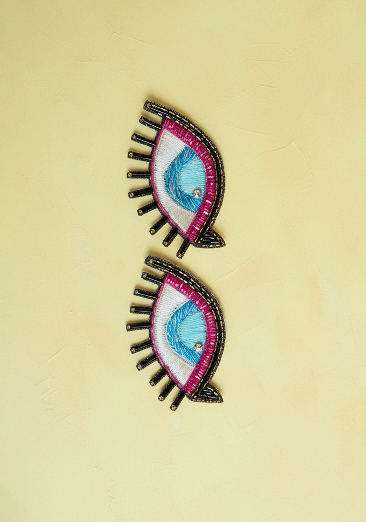 Catch all the good vibes with our enchanting Nazr Motif—a hand-embroidered eye design that's equal parts mystical and fabulous. Crafted with shimmering resham thread, delicate cut pipes, and sparkling crystal, this intricate piece features beautifully detailed lashes made with longer black pipes that bring it to life. Versatile and fun, patch it onto your favourite bags, dangle it as a bag charm, stitch it onto clothing, or transform it into statement earrings. A playful way to keep the evil eye at bay while adding a touch of traditional artistry to your everyday style.