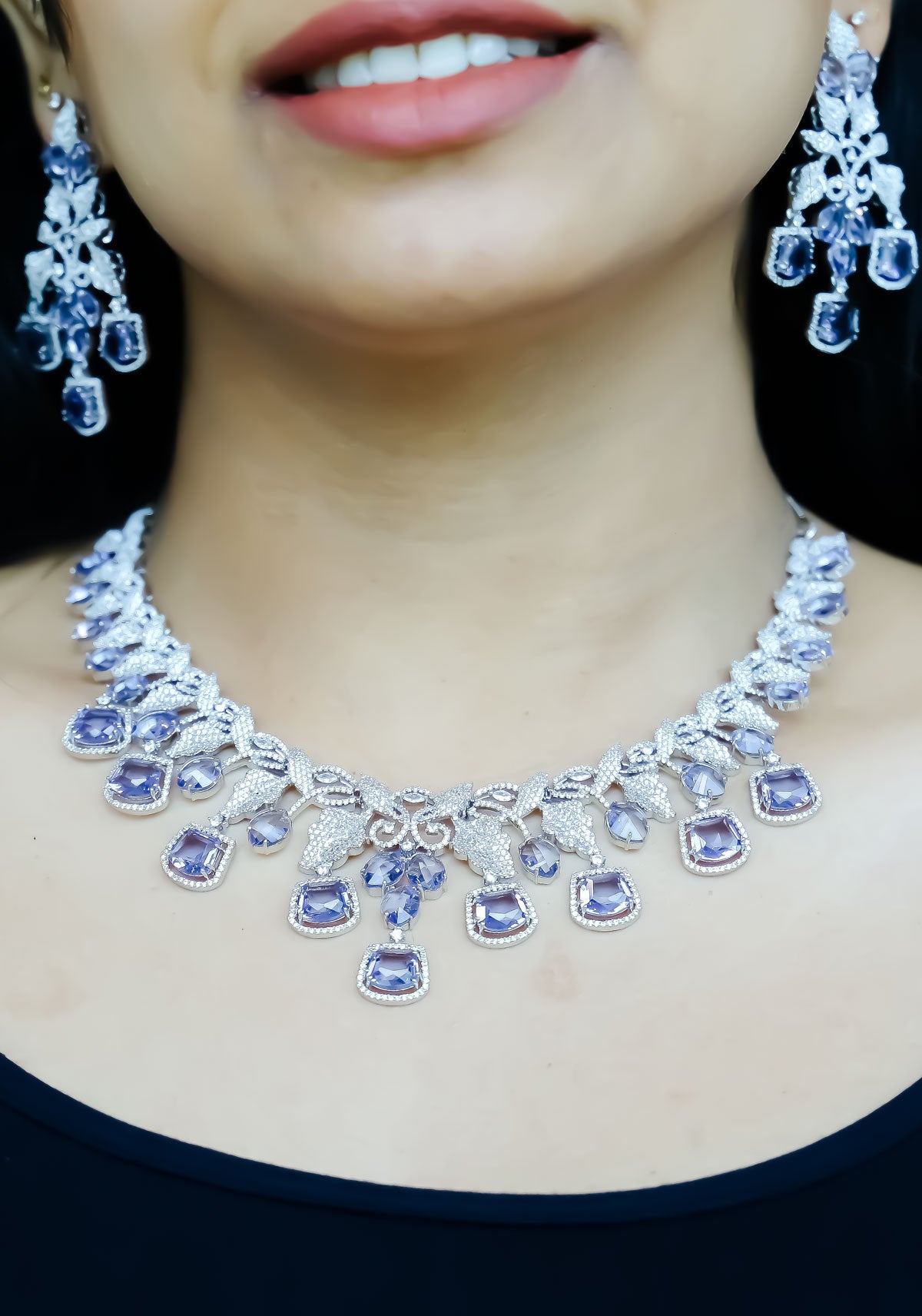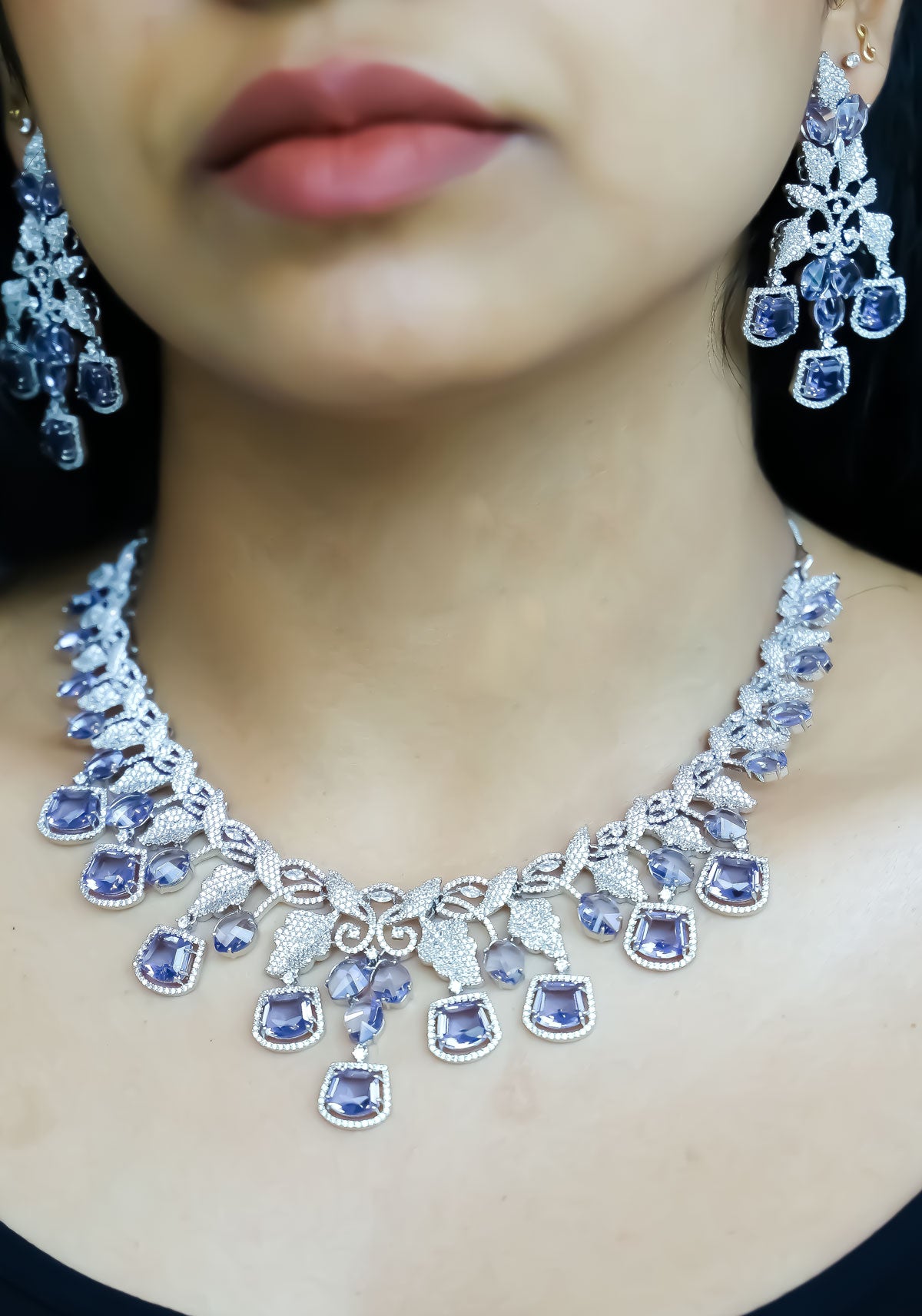 This Amethyst Swarovski silver dainty necklace set exudes understated elegance with a touch of radiant charm.