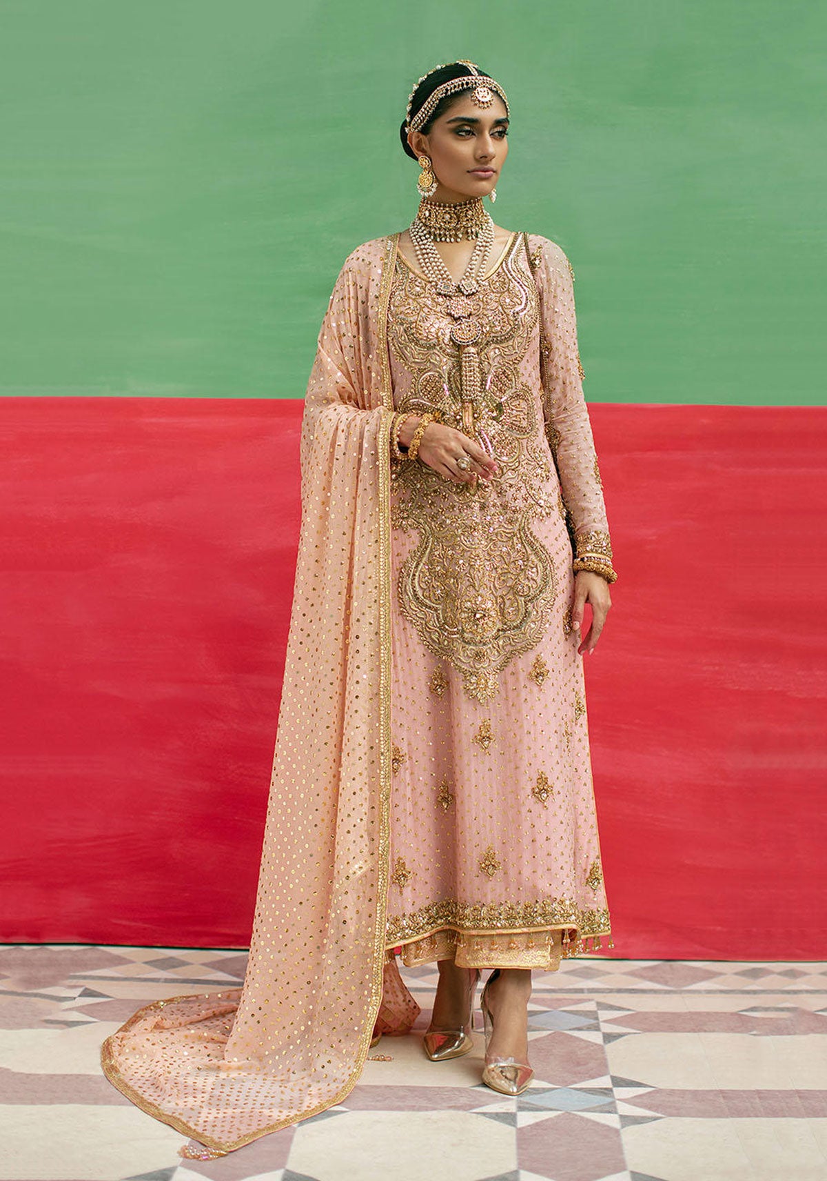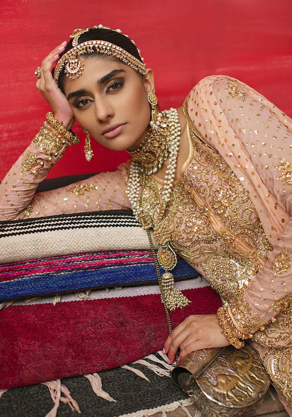 Long shirt with classic gold handwork paired with pants and a chann sequined dupatta.