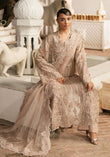 Balancing the ornate shirt, flared silk trousers sweep gracefully with every step, their dramatic flow enhancing the elegance of the ensemble. Draped with an organza dupatta, hand-embellished with sequins and finished with a scalloped edge, the outfit glows with a refined touch of glamour.