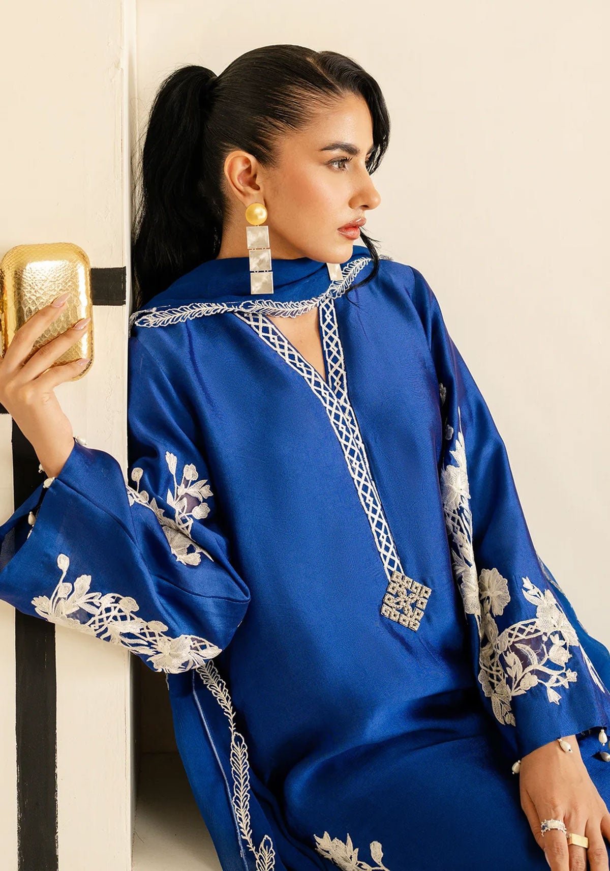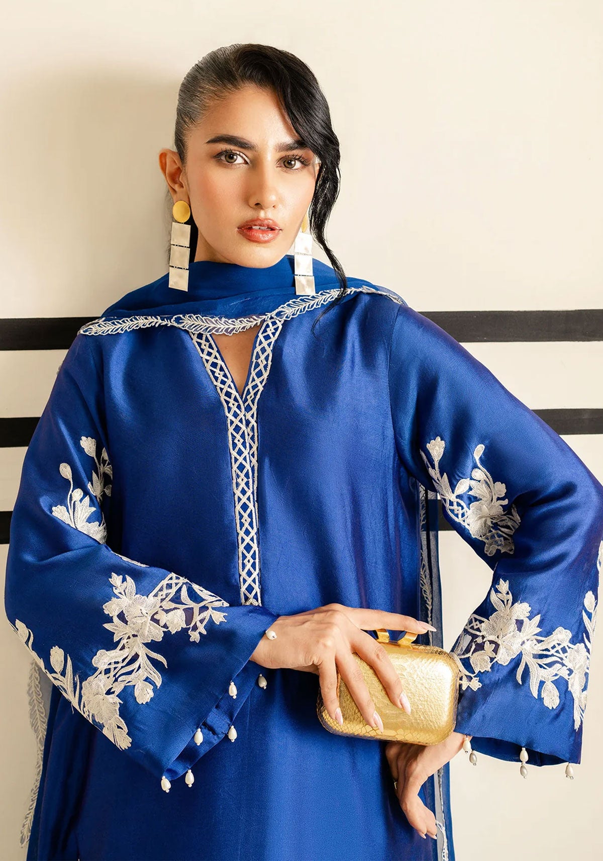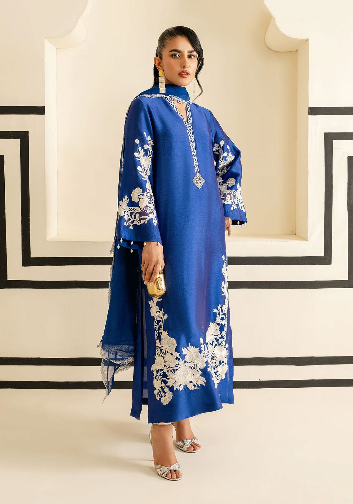 Sapphire Vine from Nooreh — a bold expression of elegance in rich blue. The tassle silk long shirt, paired with sleek raw silk trousers, weaves together regal tones and refined tailoring. Striking yet graceful, it’s an ensemble that commands attention with effortless charm.