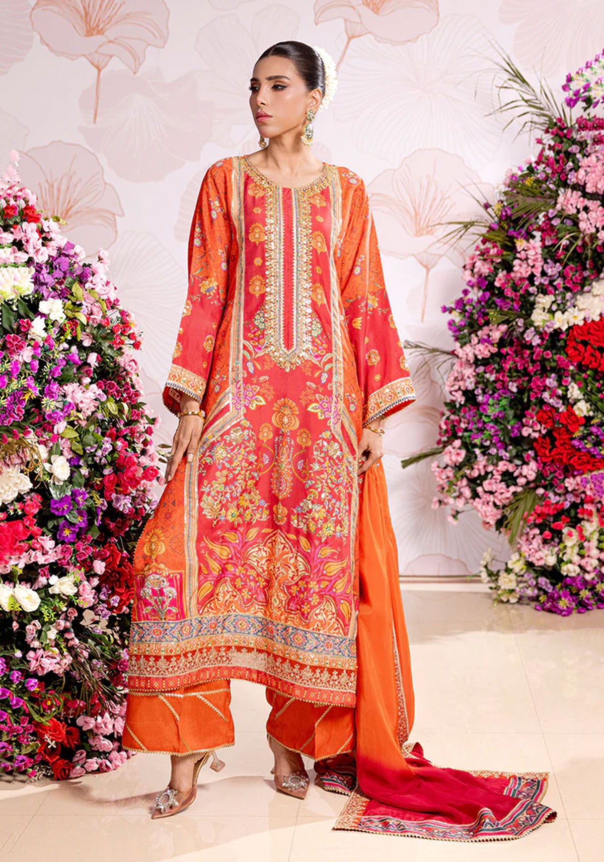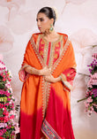 Paired with a luxurious ombre-dyed silk dupatta, gracefully transitioning between