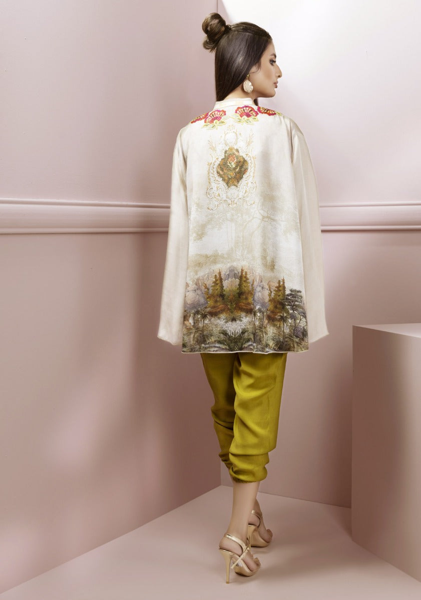 tropical inspired canvas in this trendy cut jacket